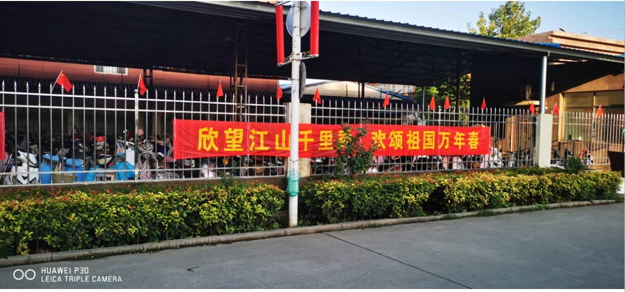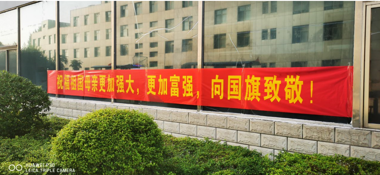 廠區(qū)被集團(tuán)辦公室人員用心布置,祝福條幅,處處飄揚(yáng)的小紅旗,員工們帶著奧運(yùn)冠軍同款的紅口罩,用一張張熱情洋溢的笑臉和熱血沸騰的愛國心,慶祝祖國母親的生日。
