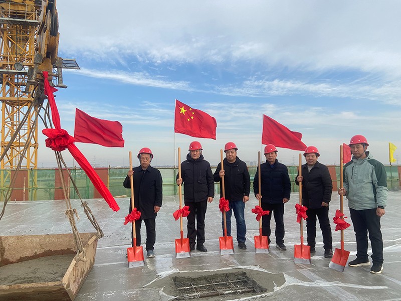喜封金頂現(xiàn)場熱鬧非凡、喜氣洋洋,公司高層領(lǐng)導及施工代表移步至工地現(xiàn)場,共同見證這一榮耀時刻。隨著最后一方混凝土澆筑,現(xiàn)場禮炮燃響,喜封金頂儀式圓滿禮成!